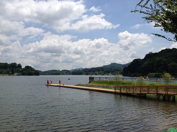 Lake Junaliska is a public lake lined with church retreats. It is beautiful!